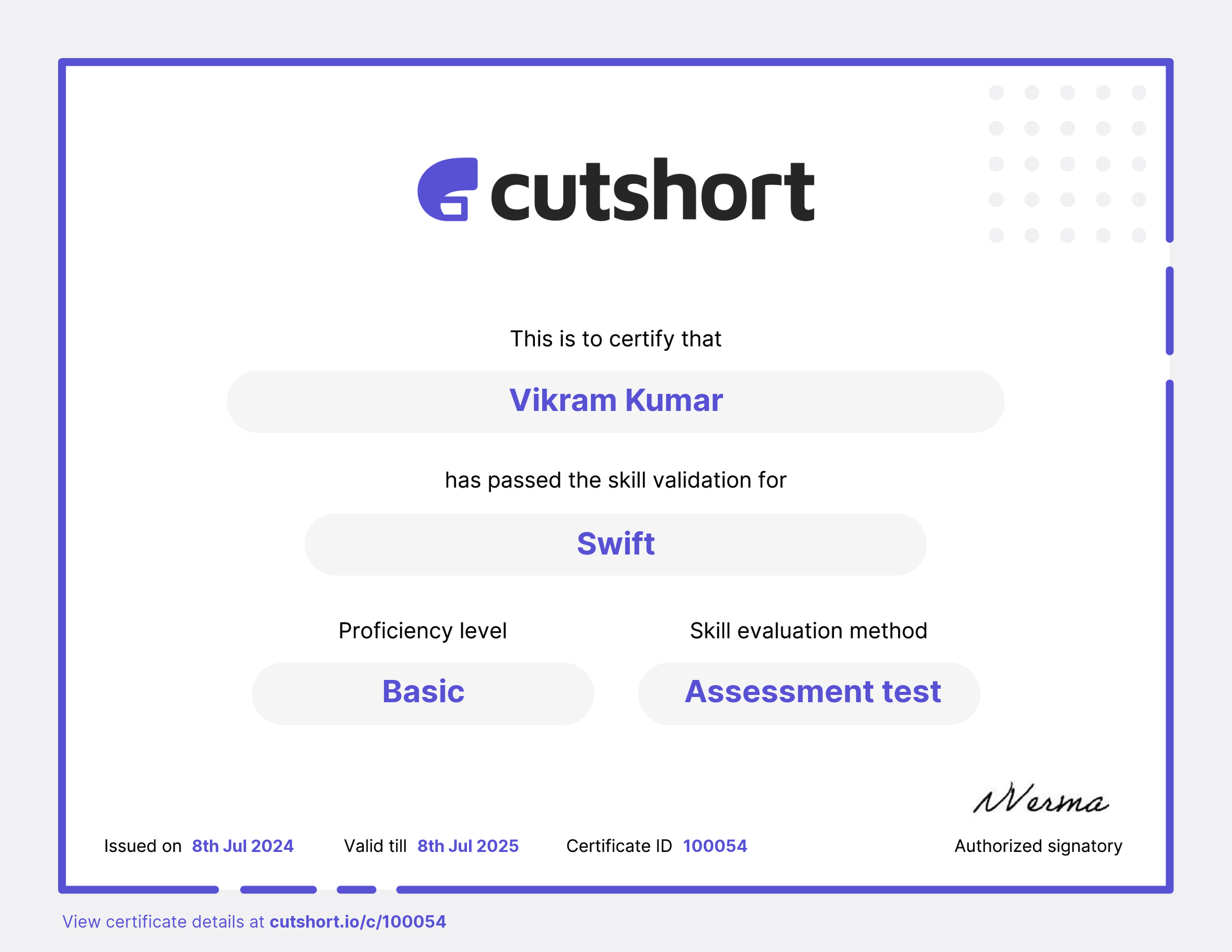 Cutshort skill certificate