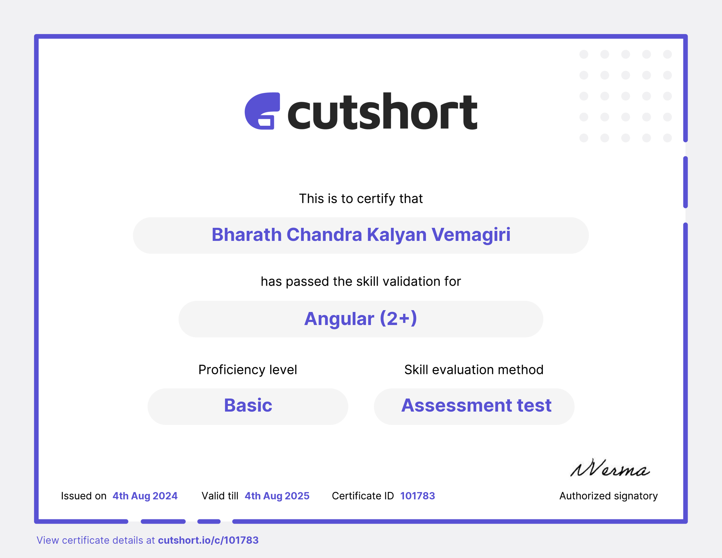 Cutshort skill certificate