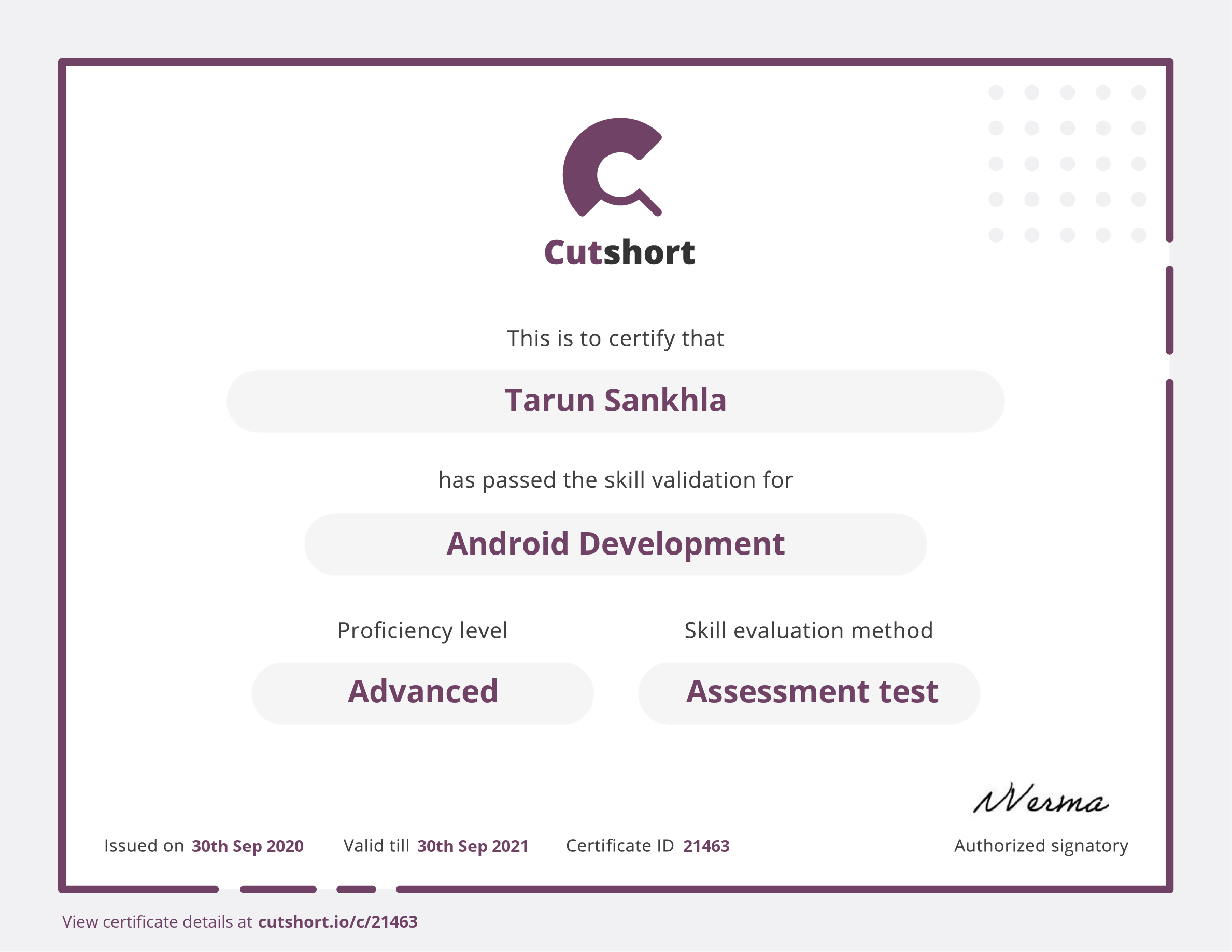 Cutshort skill certificate