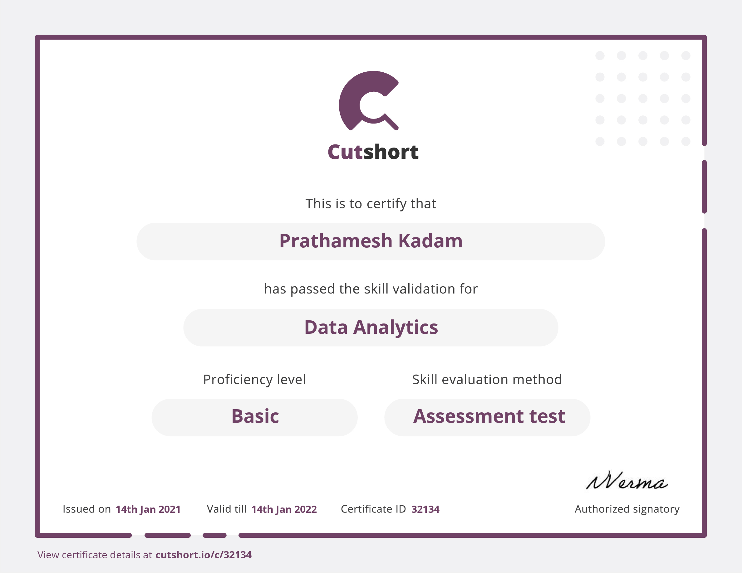 Cutshort skill certificate