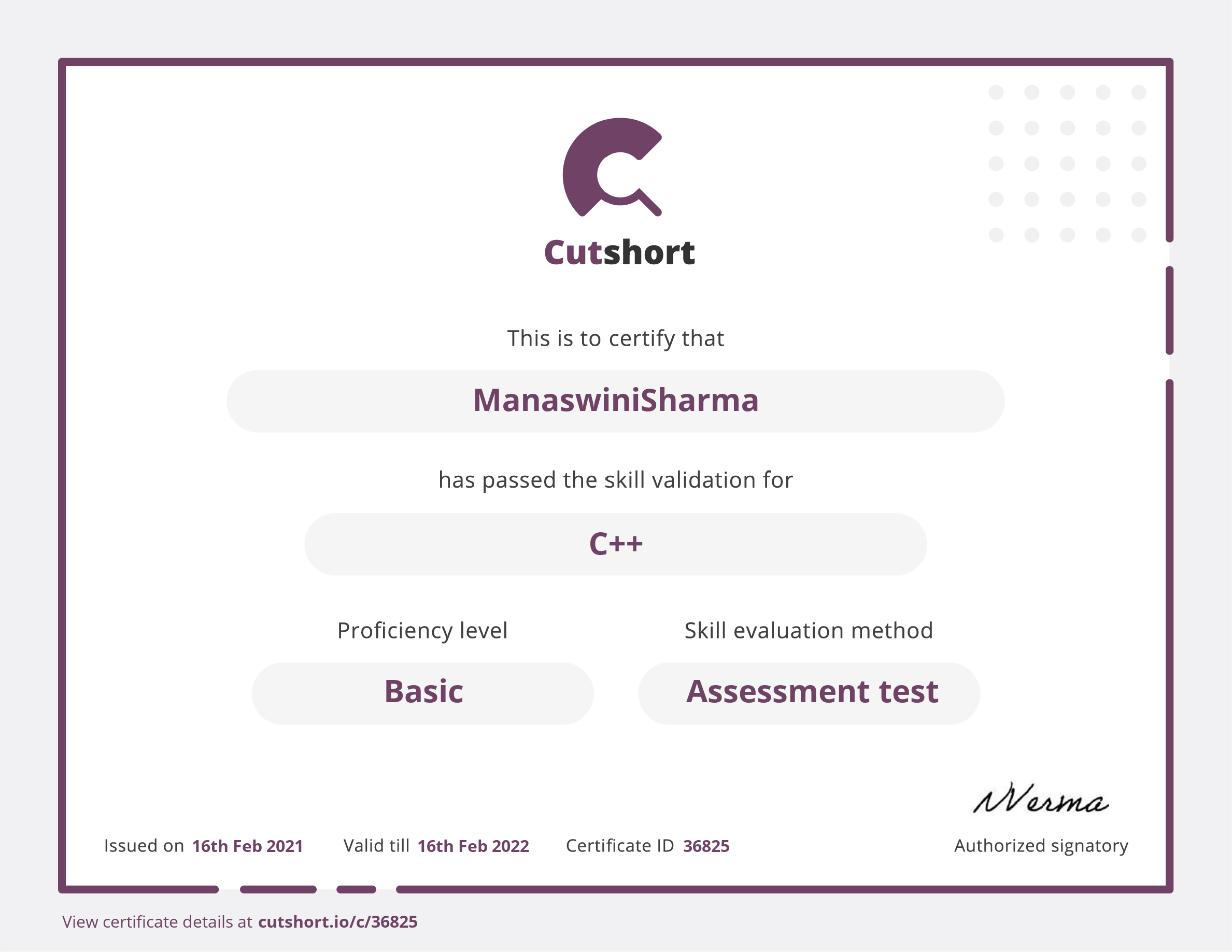 Cutshort skill certificate