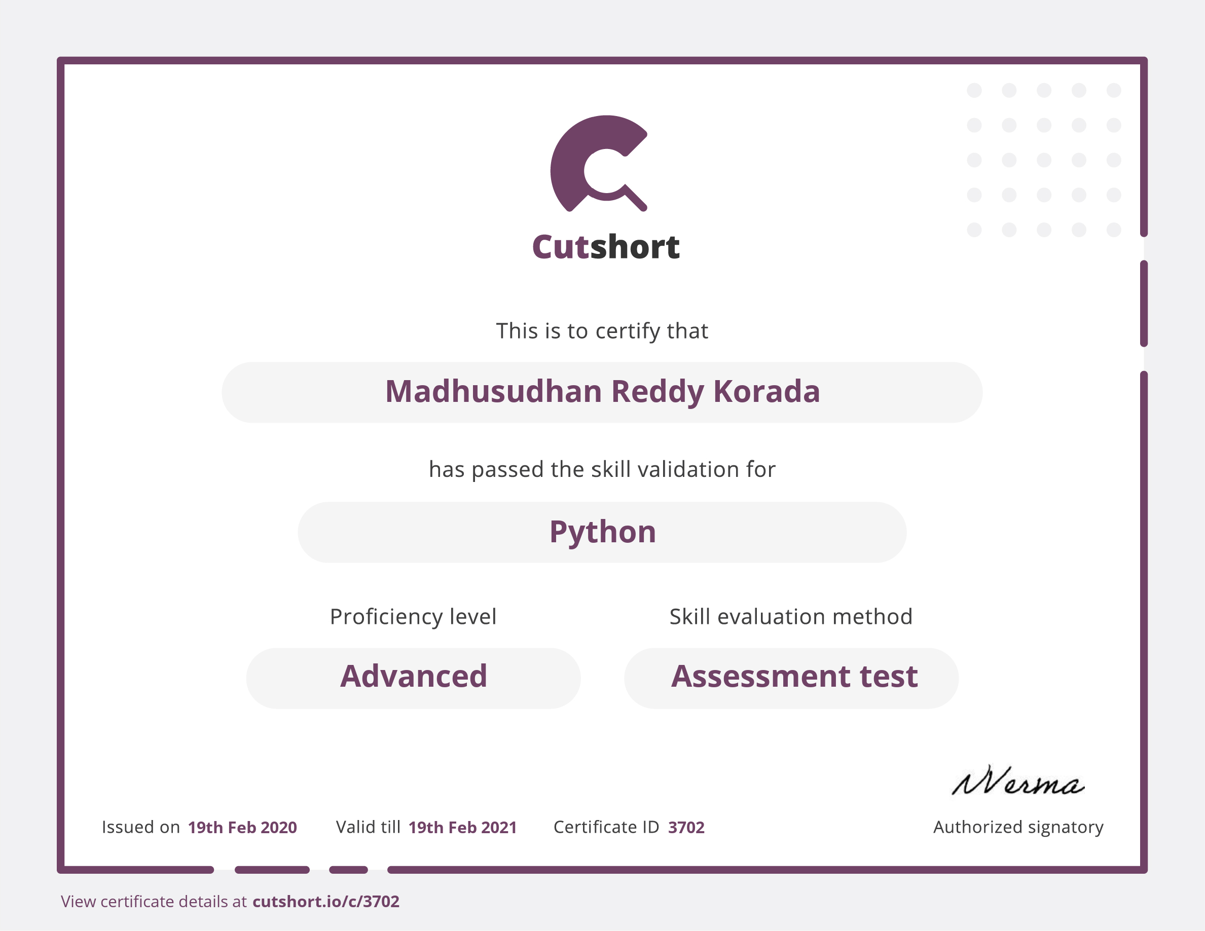 Cutshort skill certificate