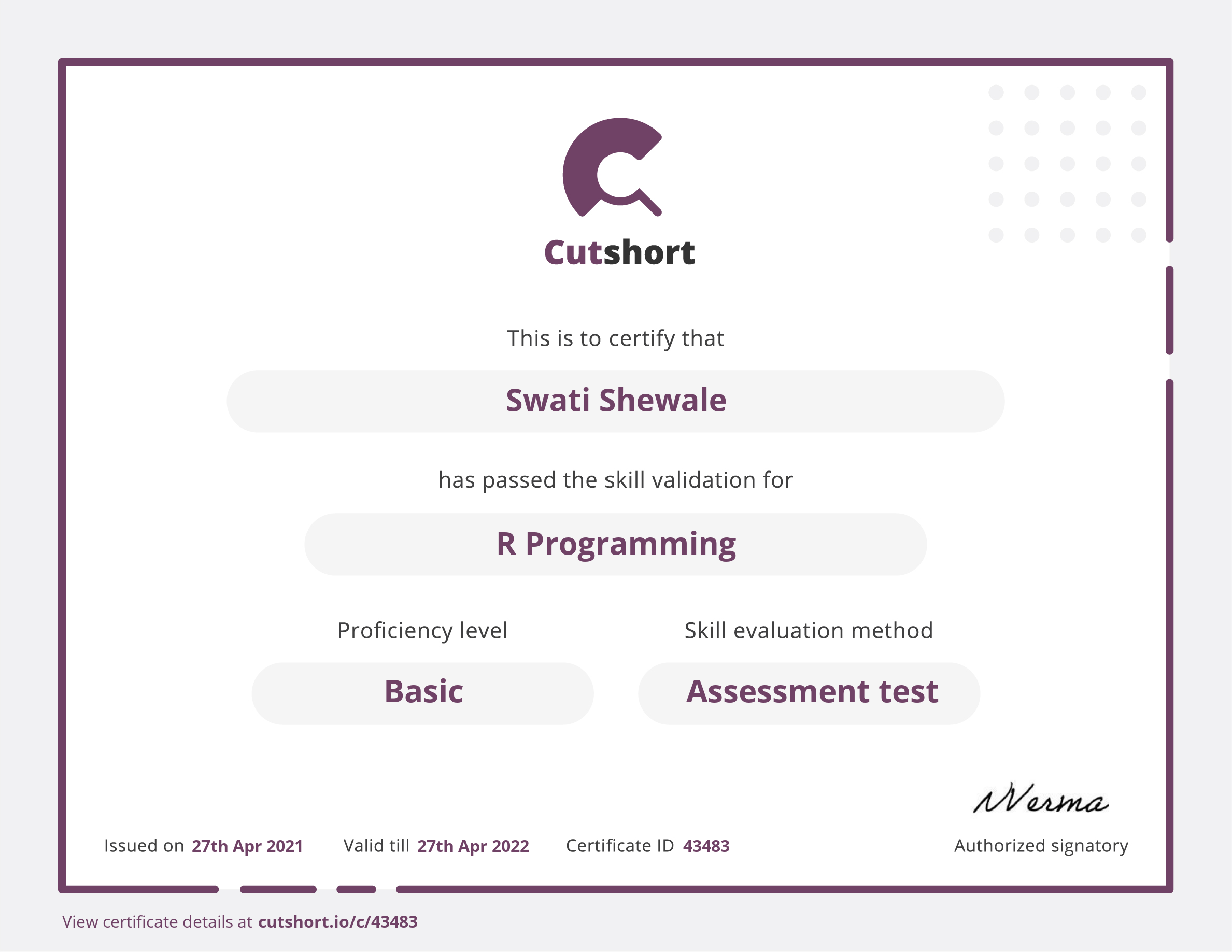 Cutshort skill certificate