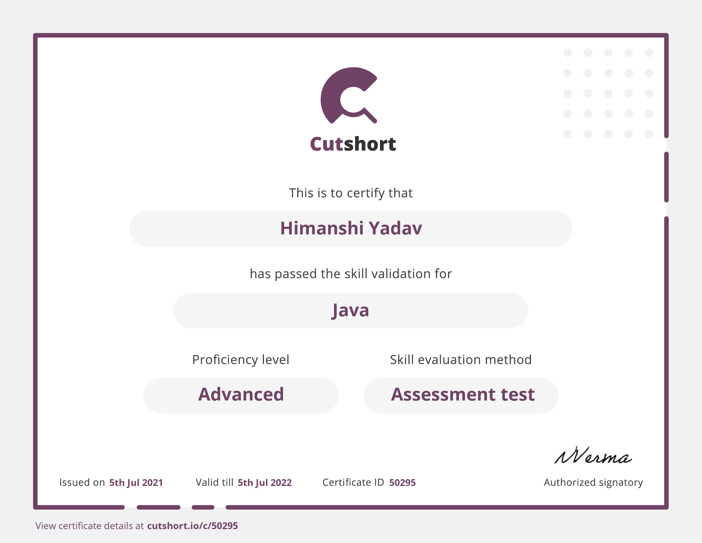Cutshort skill certificate