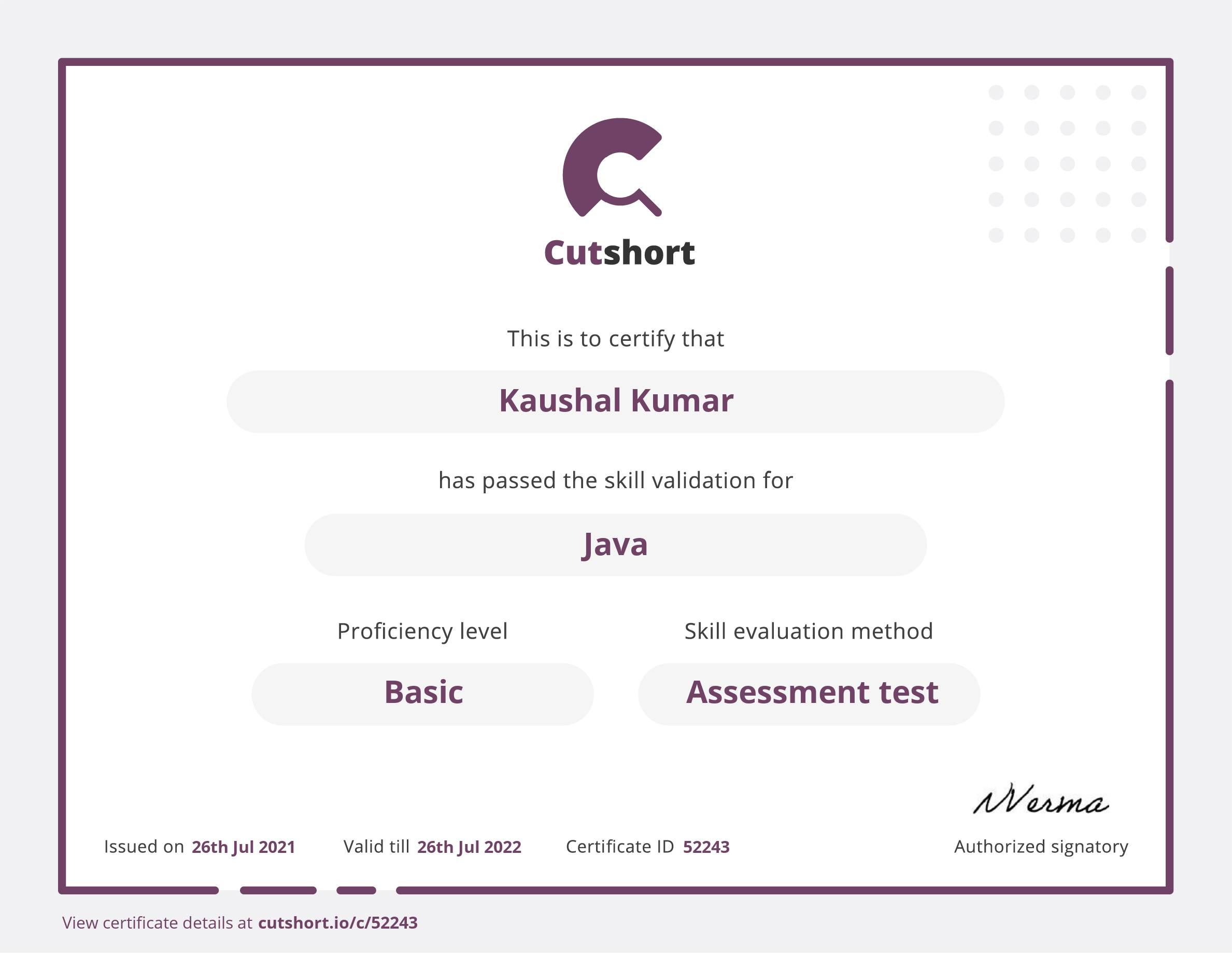 Cutshort skill certificate