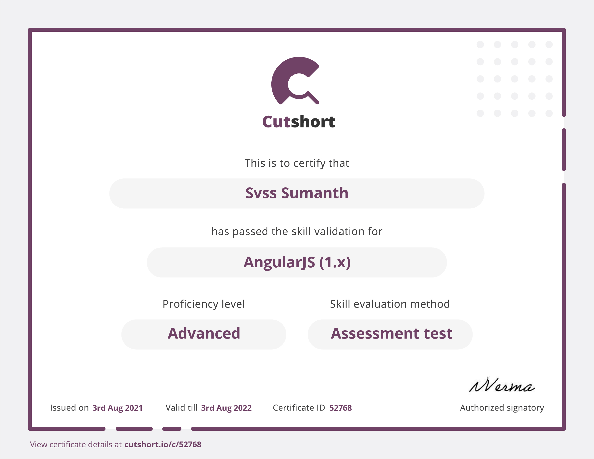 Presented to Svss for Advanced proficiency in AngularJS (1.x)