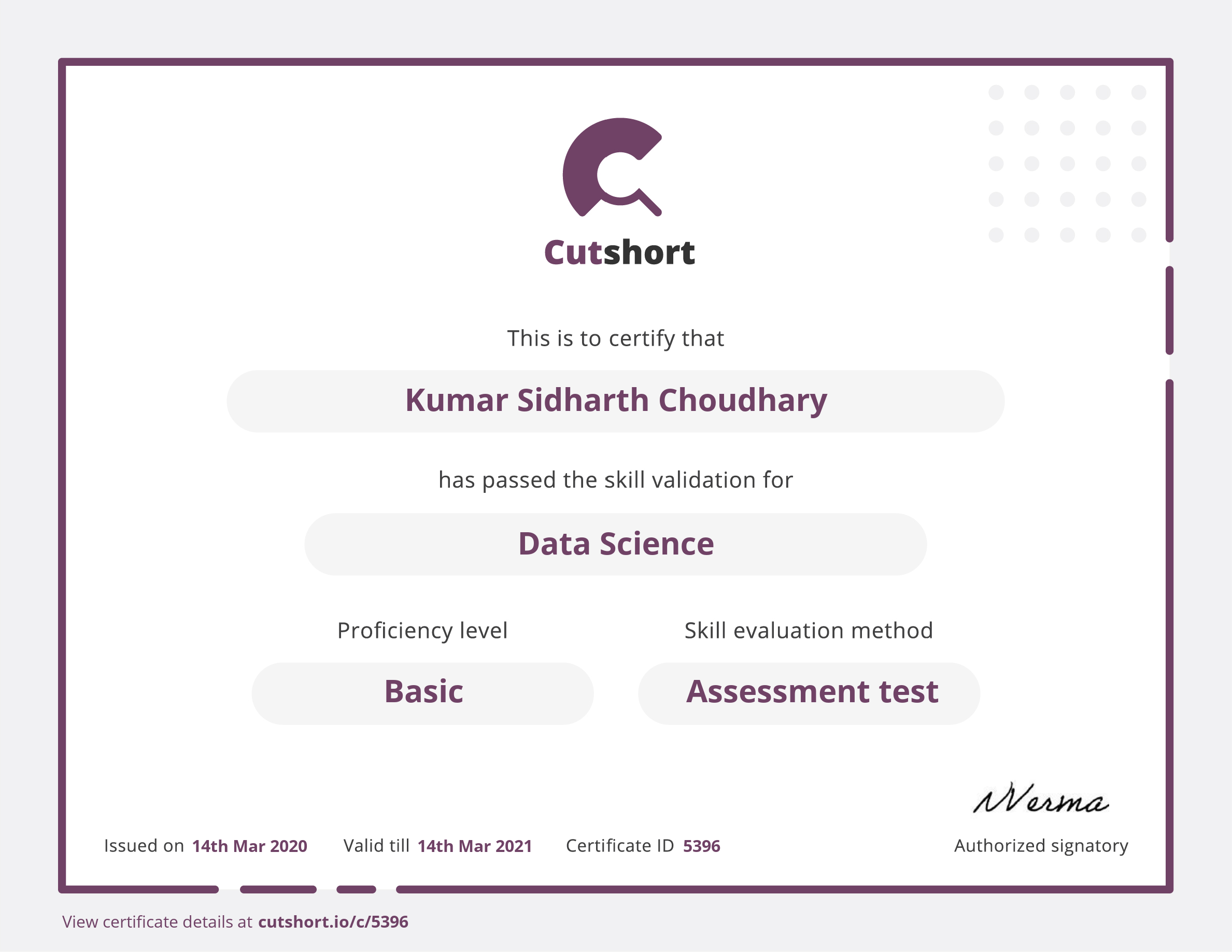 Cutshort skill certificate