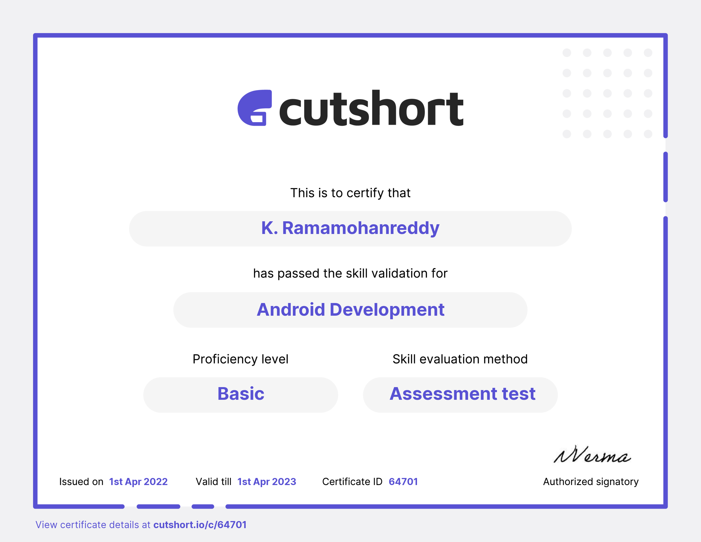 Cutshort skill certificate
