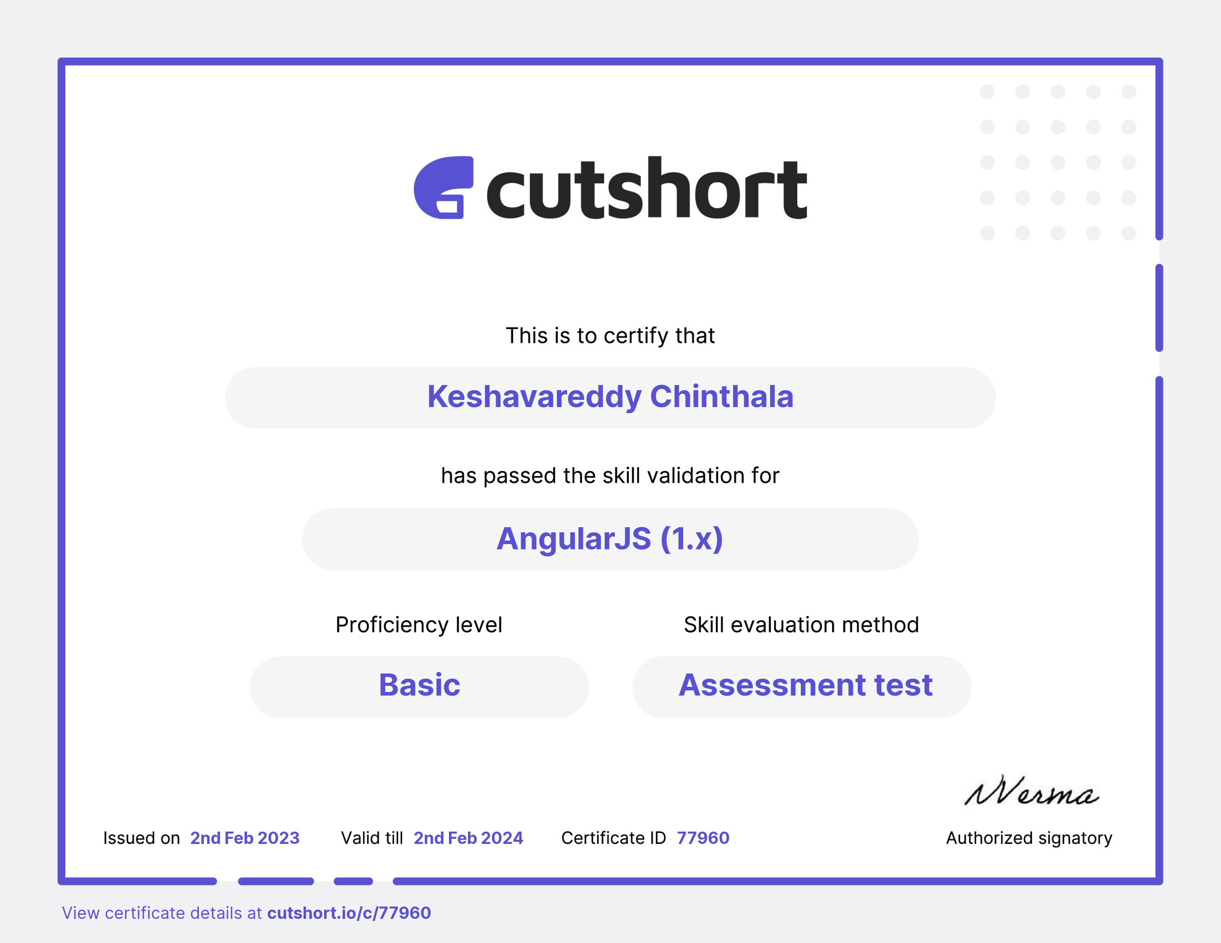 Presented to Keshavareddy for Basic proficiency in AngularJS (1.x)