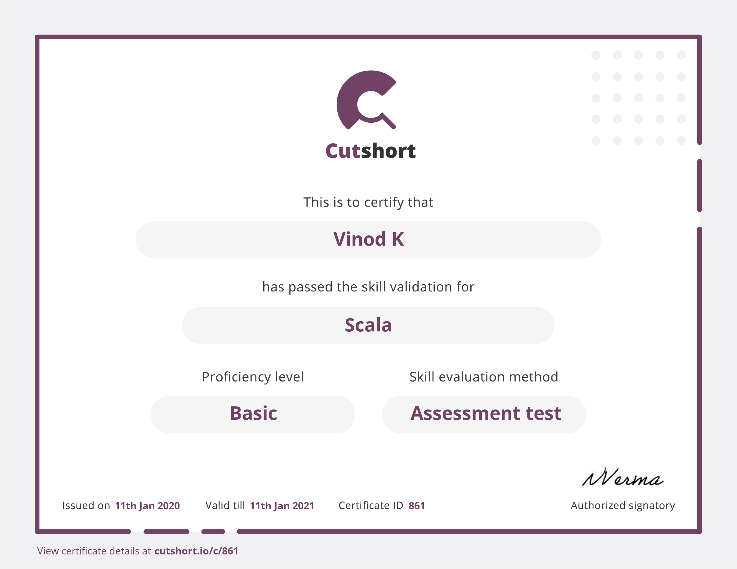 Cutshort skill certificate