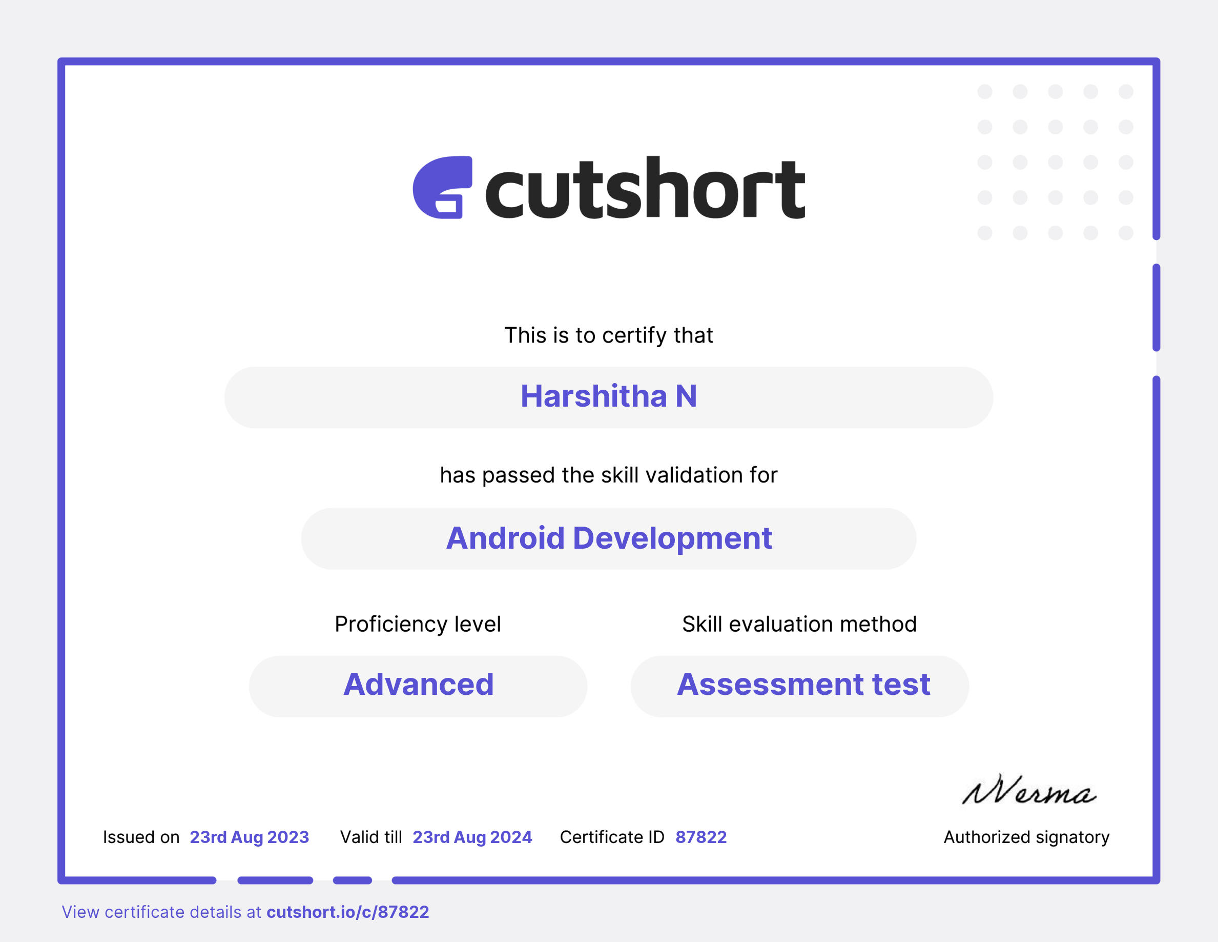 Cutshort skill certificate