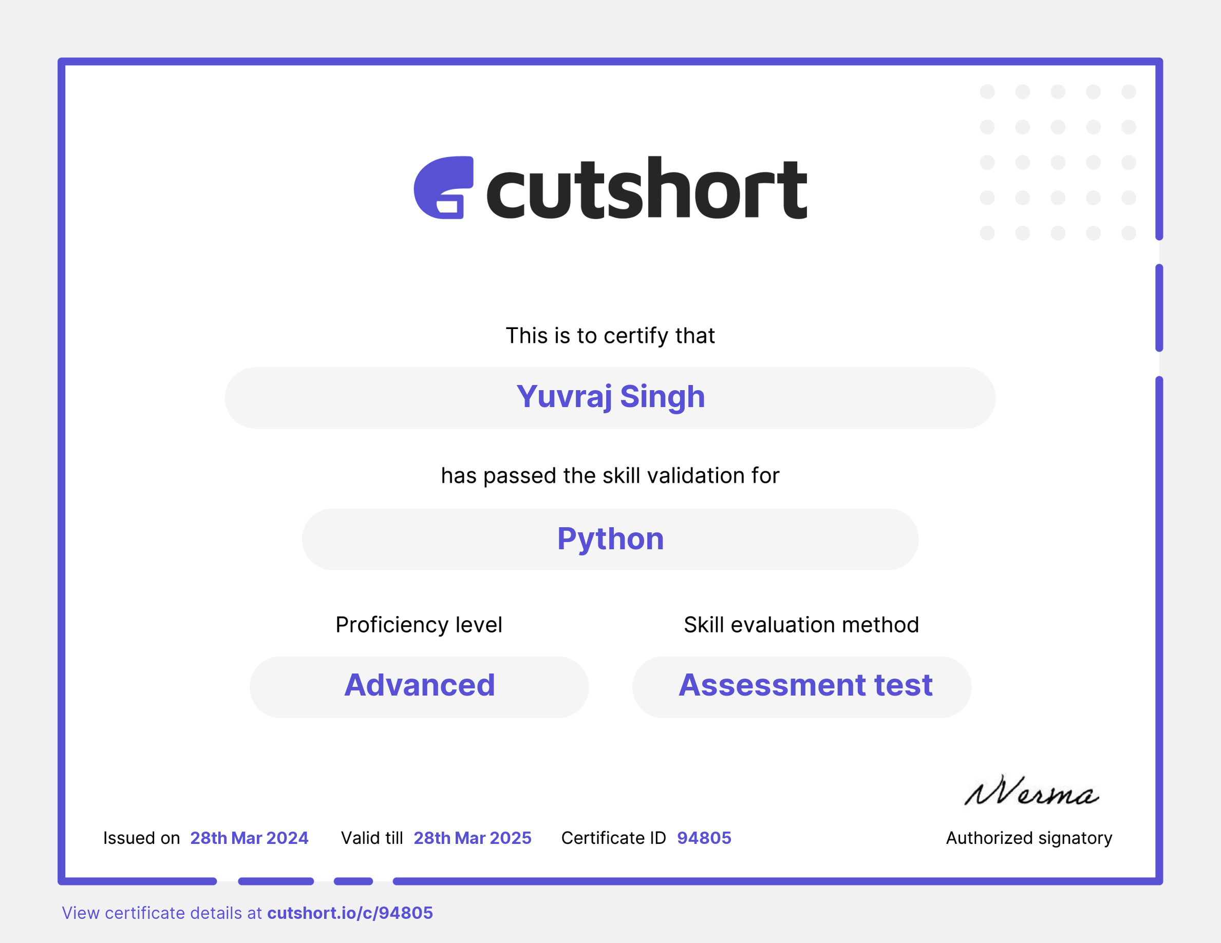 Cutshort skill certificate